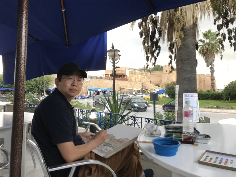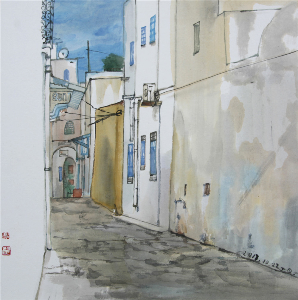 《每天的风景——突尼斯写生之一》40×40cm 纸本设色 2017年