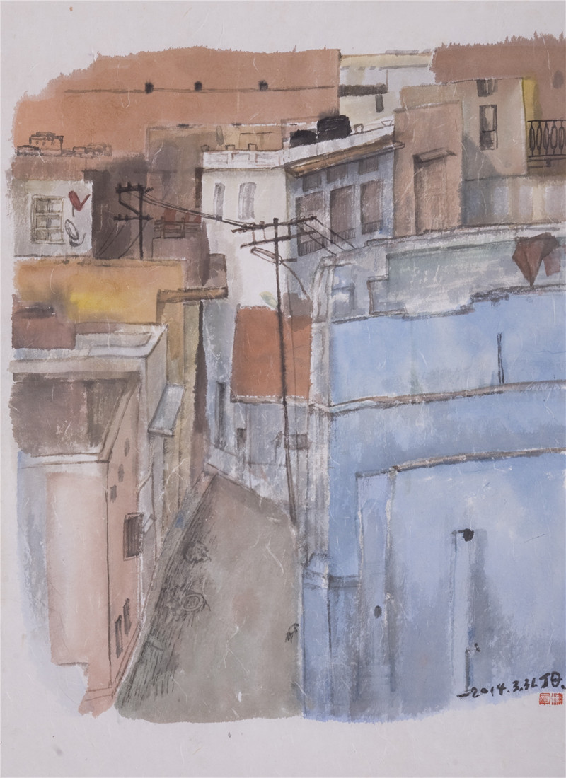 《每天的风景——蓝城印象之一》60×43cm 纸本设色 2014年