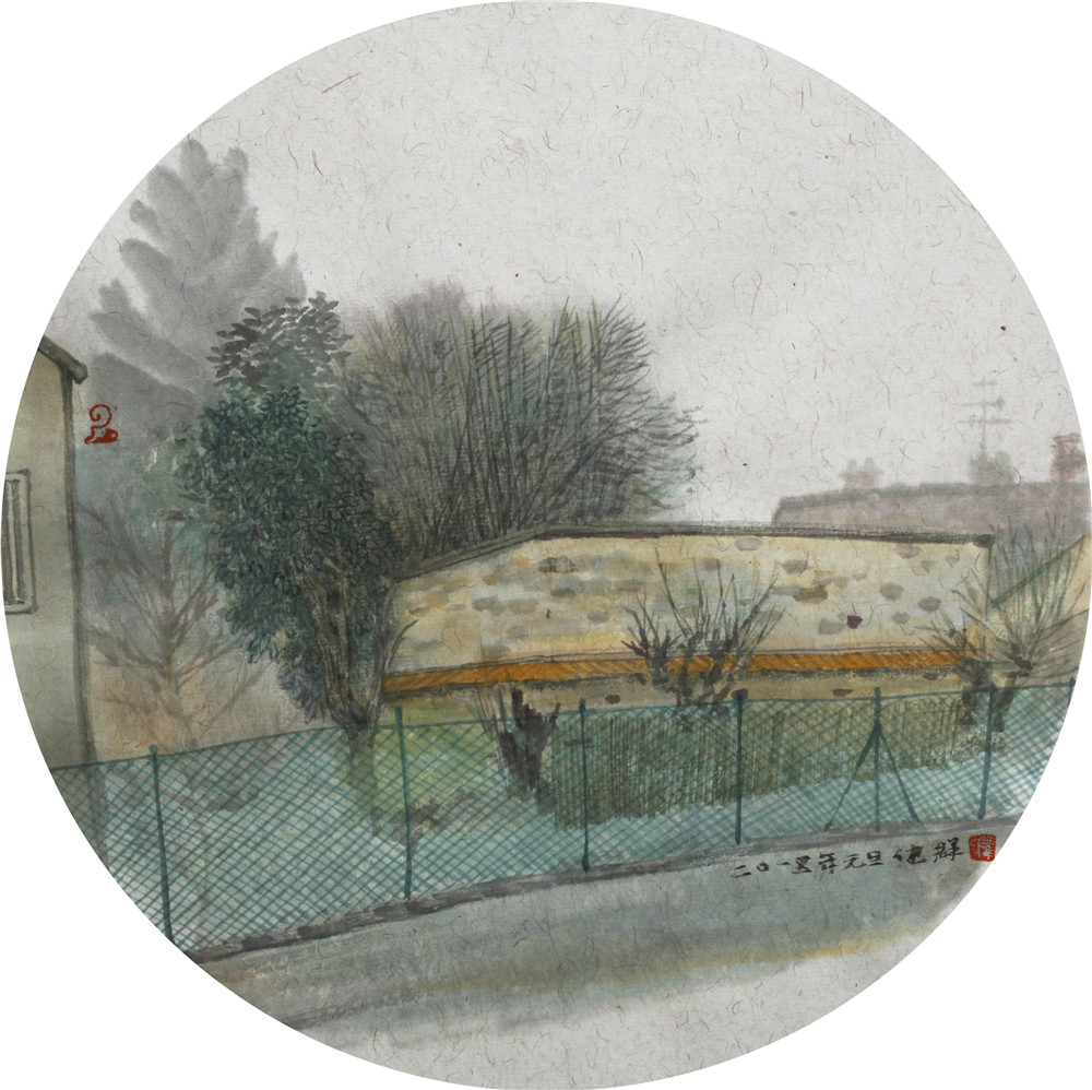 《每天的风景——巴比松街道》27.5×27.5cm 纸本设色 2015年