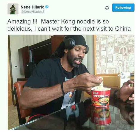 另一位效力于火箭队的NBA球星内内,对中国泡面也是十分钟情,不仅在社交媒体上大呼其美味,还扬言为此已经等不及要踏上下一次中国之旅了。