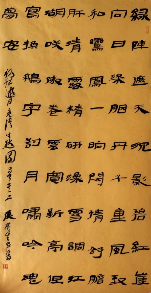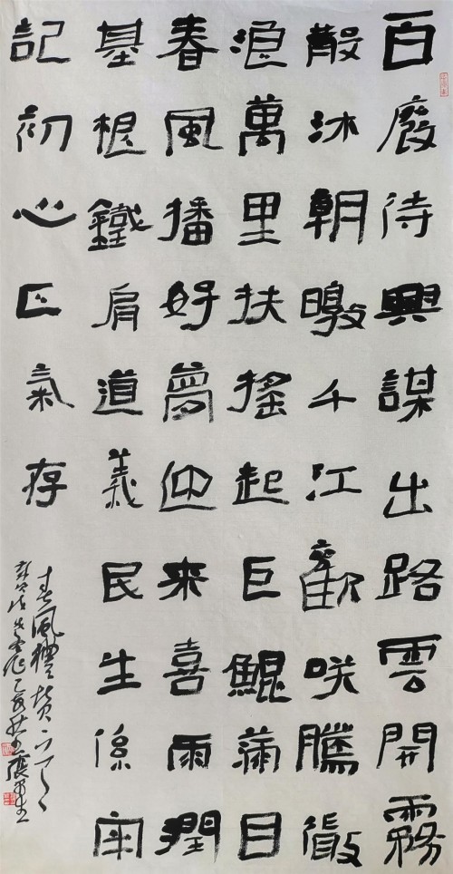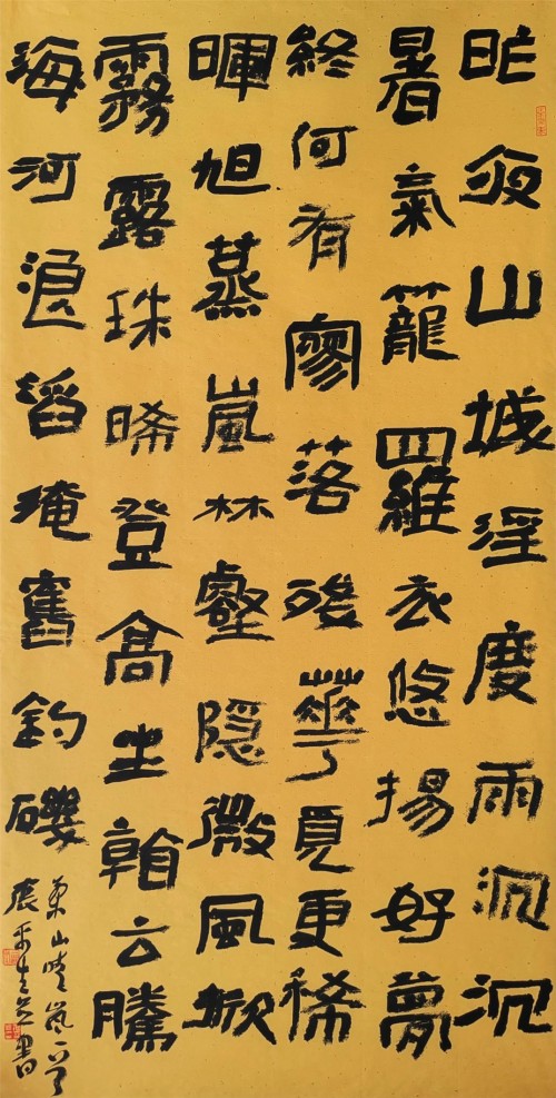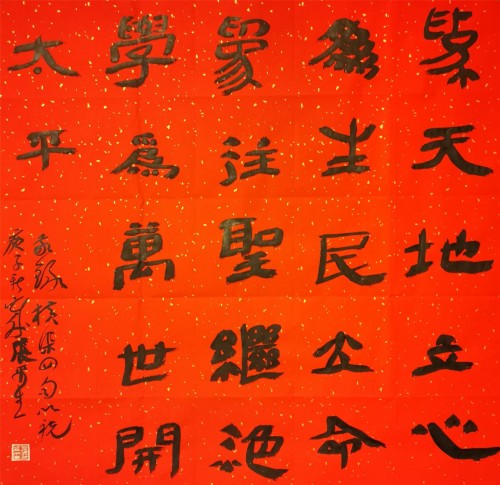 当然,张平生爨体书风特色还正在形成之中,但其爨书风貌的已经基本竣立,确是不争的亊实。如上斦述,若果我们了解了爨书在文化史上的重要意义,那么就会赞同张平生爨书是当今文化座标上的一个亮点的看法。
