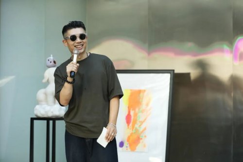 龚新他是建筑师出身,但是由于自己的对陶艺的喜爱和对他狗狗的一个怀念,他创造出了今天的一个展览的作品,然后非常动人。大欢老师的作品让我也非常的惊喜,在他是把中国的传统书法和我们的当代的艺术相结合,在色彩碰撞,然后还有一个客观的那种字体,这样的一个和书法相结合的过程中,让我们可能可以看感悟到一个比如说人生的一个感悟,所以我觉得他们两个的展览各自非常的出彩,那一个非常的相得益彰。“非常感谢策展人李佳益的邀请,然后我觉得非常棒,在这样的一个环境里面,能够邀请到这么两位这么优秀的艺术家来做这样一个展览,让我们在这样一个环境中,对于传统对于爱,对于情感和对于当代艺术有一定的思考,非常难得。”