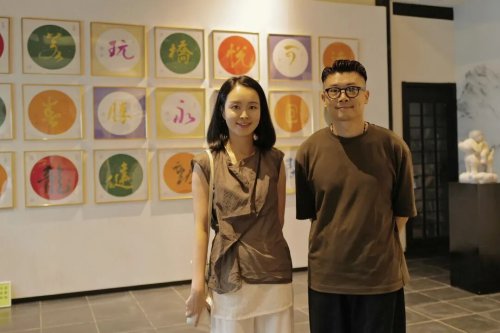 其实在10年前2015年的时候,我做了一个艺术项目叫回声计划,这个项目实际上就是老一辈与新一代,然后传统文化与当代艺术的一个结合,一个创意创新,那么这个活动在当时是特别成功的,那么这一次实际上也相当于是一个自我的展现,这一批作品其实还挺多的,但是因为空间的原因就是整理出了一共整理出了50件。一字为禅其实是反映了我们当下最需要的99个字,然后另外一部分是属于是创意实践,那么这个创意实践打破了书法的传统的固有界定,都是以色彩为主去来发生,去探讨一些我们生活当中比较有意思的事情,希望通过一个比较有轻松的,比较有亲和力的,比较有这种审美趣味的这么一些方式来传达这样的一批作品。